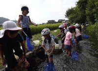 川に入ることや生き物を採ることについてあまり経験のない子どもたちもいたが、自然と関わる貴重な機会となった。 |