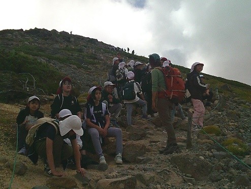 自然保護センターで、ガイドと出会う。 3年時:上高地源流学習、4年時:梓川リバーハイクに引き続き、リトルピークスのみなさんにお世話になるため、ガイドの顔も覚えており、気軽に質問する児童の姿が見られた。 ![]() 大黒岳へ向かって登頂中 富士見岳山頂 肩の小屋から肩の小屋口へ。 |
