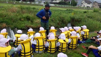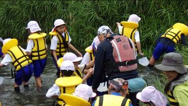 | 実施概要 | 女鳥羽川での水辺の安全学習および川遊び・川の生きもの探し ・身近にある女鳥羽川と関わり、普段気づかない自然の様子や川の生き物を自分の目で見たり、再発見したりする。 ・川との安全な関わり方について知る。 |