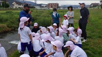 身近な女鳥羽川に、いろいろな生物が棲んでいることを知ることができ、楽しそうでした。持ち帰ってきた生物を家に持ち帰った子も多くいました。 2 先生方の感想、要望等 身近な生物や身近な自然に触れ合う機会を作りたいと思いながらも、川遊びは素人の大人一人では怖くてとても連れていけません。今回、川について詳しい方が何人もついてくださり、安全に楽しく川遊びをすることができました。ありがとうございました。 |