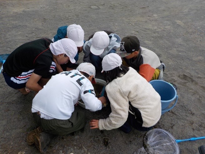 ・百石堰に多数の生物がいて、子どもたちは楽しく学習できた。