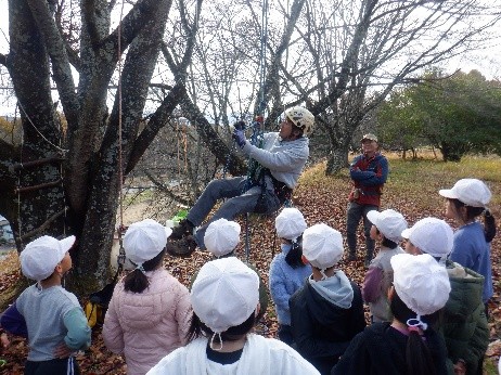 ・デイキャンプとても楽しかったね。ツリークライミングはとても大変ですいすい上っていく人はすごいなと思いました。 2 先生方の感想、要望等 ・空中での作業や、初めての体験だったため、時間がかかって思ったところへ行かれなかった子がいたり、短時間になってしまったりした子がいたが、経験を積んだことが次につながると思うのでよい経験ができたと思う。 |
