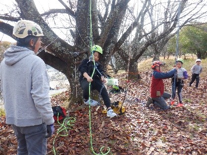 | 実施概要 | ・木に登るためのロープクライミングを知る。 ・ロープクライミングに挑戦する。 ・待ち時間を使ってたき火をしてデイキャンプを楽しむ。 |
