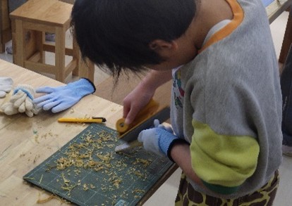 | 1 授業を通しての子どもたちの反応、感想等 ・小刀で削るのが難しかった。 ・手がすごく痛くなったけれど、やっていて楽しかった。 ・羽がだんだん斜めに出来上がっていくのが嬉しくなって、どんどん削っていったら、角度がついてきたのでもっとやりたくなった。早く飛ばしてみたい。 2 先生方の感想、要望等 |